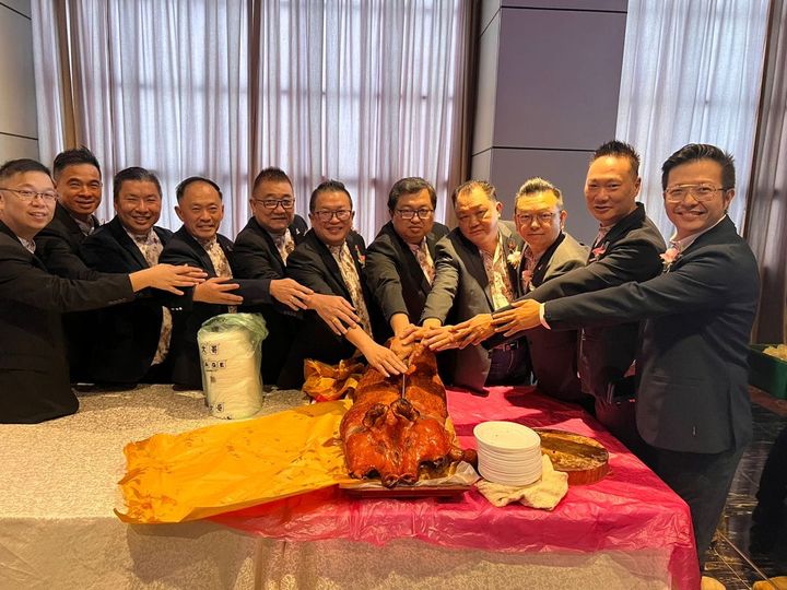 黄总商安排舞狮财神爷迎宾,还有理事们一同进行切烧猪仪式后分给宾客享用;更有別于一般午宴,现场设有台湾著名艺人林瑞阳创立的护肤品牌“TST庭秘密”摊位,让宾客们免费注冊会员并赠送护肤产品,正如总会长黄保国博士在致词时所说,姓氏商会与宗亲会是有分别的,商会是以商业人脉交流为主,通过互动与交流,为宗亲创造更多的商机,提高在商场上的竞争力。