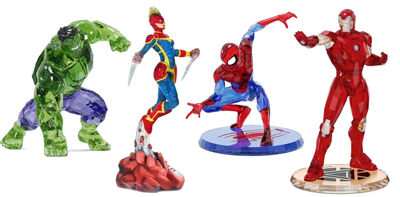 Swarovski X Marvel尚包括家居饰品系列,以黑豹、蜘蛛侠与绿巨人等漫威人物英雄人物为主,以品牌的水晶切割为这些漫威英雄的造型。其中惊奇队长(Marvel Captain )高10英寸,以一万多颗水晶制成,另一款为蜘蛛侠,采用Swarovski 专利的Pointiage 技术、由超过32,000颗水晶、耗时233小时制作而成,是当中最珍贵的限量版设计。